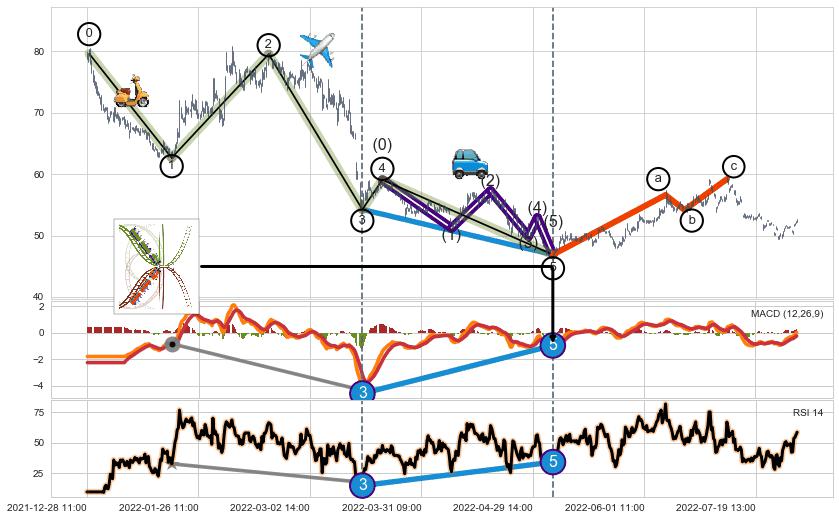 ➣ 波浪理论:猜想达到c点后小回调终止反转上涨 → 上涨 → 【拐点】临近 → 阶段均值回复结束后继续大周期趋势跟踪