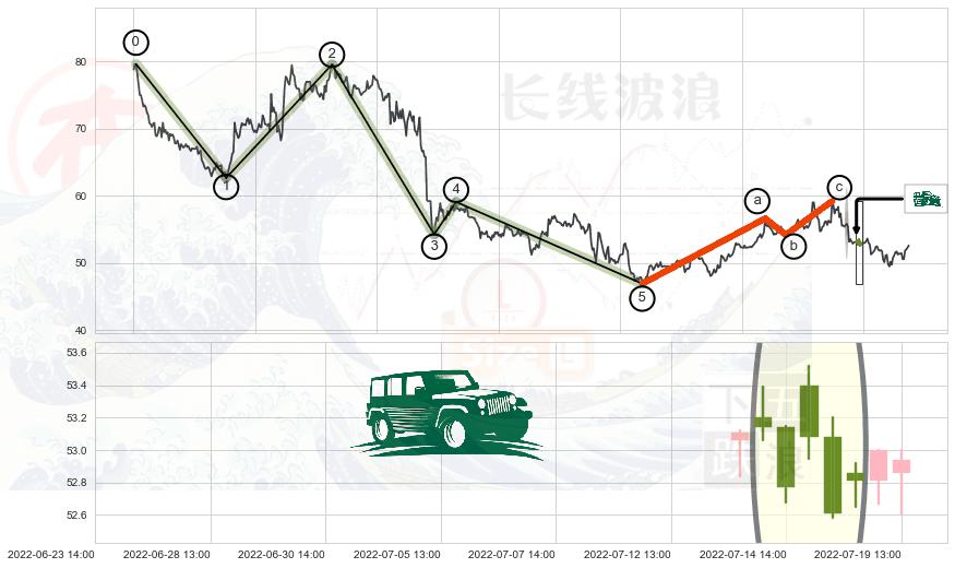 ➣ 调整浪已超过预测的c点位置,后续大趋势循环浪继续上涨概率52.38%,谨慎做空