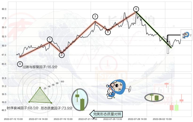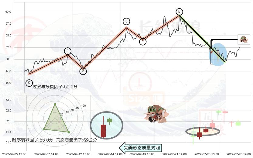 ➢ 🕰 价格走势在2022-07-14 13:00:00至2022-07-18 13:00:00期间形成高档五阴线,残存影响值:-3.74