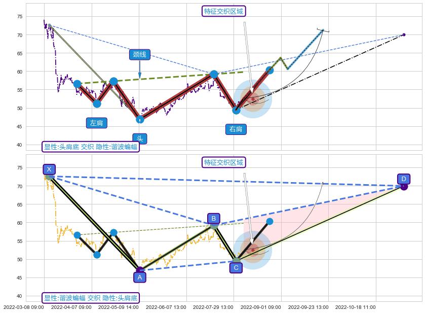 ➢ 头肩底与谐波蝙蝠信号事件周期长度级别相同,同周期信号事件