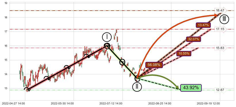 ➣ 循环浪继续向上【平均值】位置(09-14:11, 17.15),匹配聚类样本比例57.18%, 可能性概率32.07%