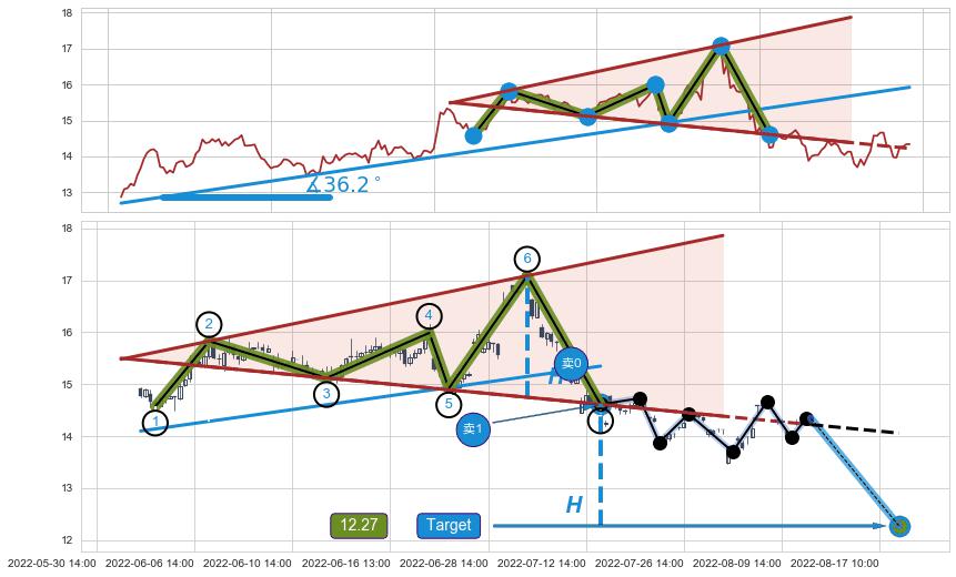 ➣ 【已确认突破】最后价格:14.34与最小【反转】第一目标价格→(08-17:14: 12.27 )相较: 下跌空间【较大】