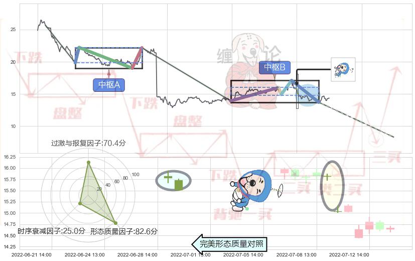 ➢ 下跌孤独十字星 🔜 缠论中枢点破位中枢B支撑下拉 综合量化分数:49.42 【中性】
