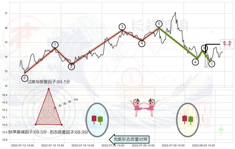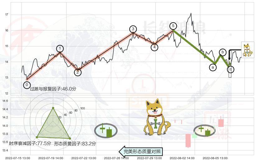 从2022-08-02 14:00至2022-08-12 14:00,共包含17个小时,阶段股价上涨4.73%,阶段股价变动位移路程比: 1 : 3