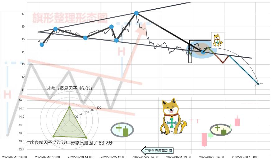 ➢ 2022-04-28 13:00-2022-07-13 14:00上升趋势存在反转[风险],其原上升趋势的支撑位(15.92)已破位[强阻力信号],原上升趋势角度: 36.2˚