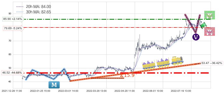 ♞ 20小时均线:84.00,30小时均线:82.65→ 快线>慢线