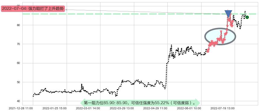 ♘ 阻力价格位85.90,可信任强度55.22%,距离最后交易2022-08-12 14:00形成的收盘价格84.10相差 +2.14%