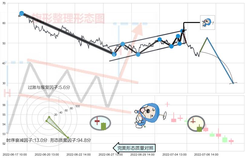 ➢ 🕰 价格走势在2022-07-15 13:00:00至2022-07-19 13:00:00期间形成高档五阴线,残存影响值:-3.24