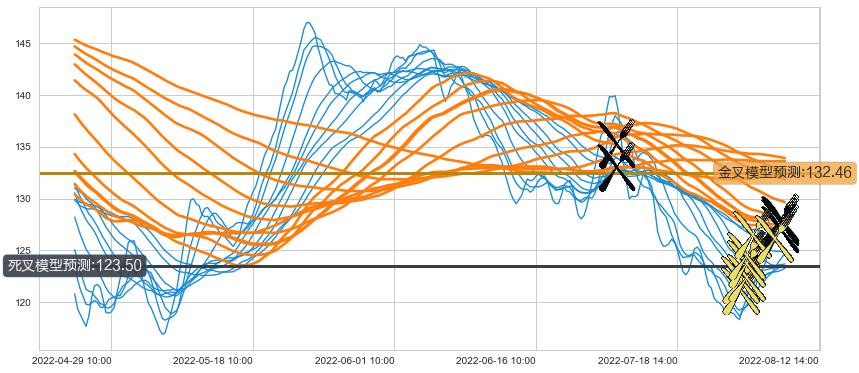 ➣ 10小时均线于(08-11 14:00: 127.93)形成【死叉】基于【死叉历史模型】预测死叉后最低波谷价格: 124.33, 死叉后最低价格126.70,尚未达到预测最低波谷价格, 预期继续下跌