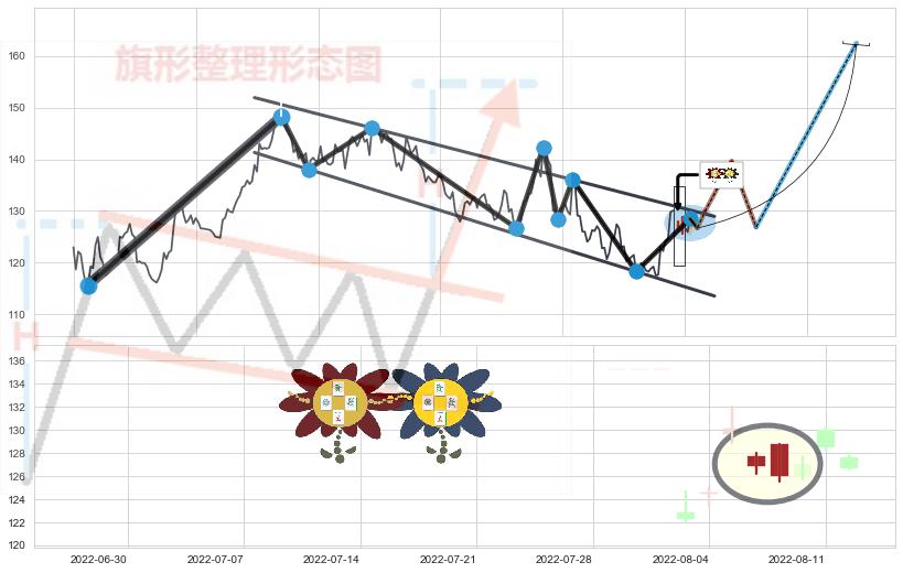 ➣ 降旗形:猜想突破点临近,临近关键阻力位,预期拉升突破上涨