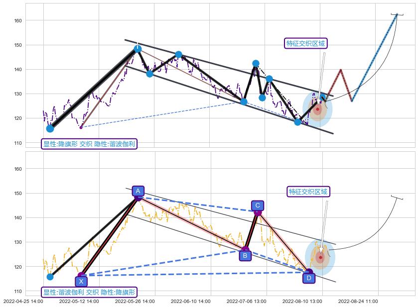 ➢ 降旗形与谐波伽利信号事件周期长度级别相同,同周期信号事件