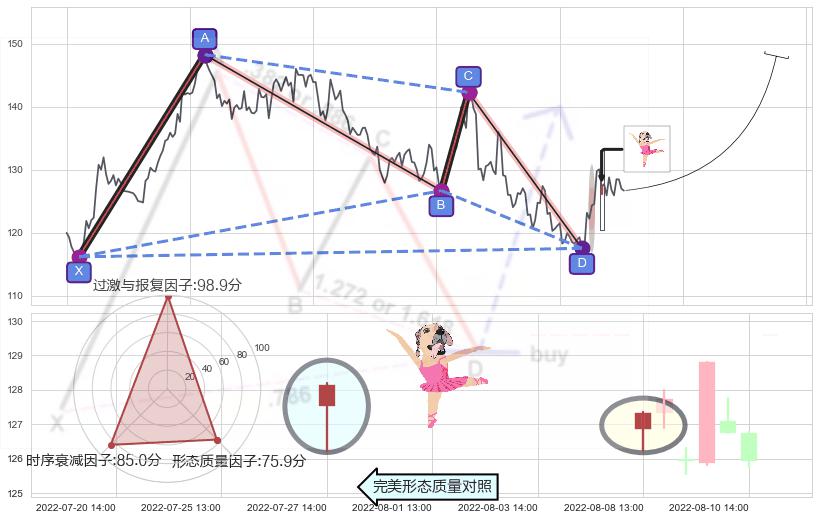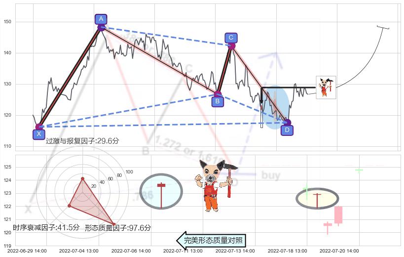 ➢ 谐波伽利:已到达d点:猜想c下行到达d点后报复性拉升上涨(均值回复)