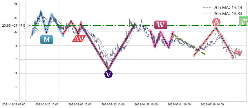 ♞ 20小时均线:16.44,30小时均线:16.84→ 快线<慢线