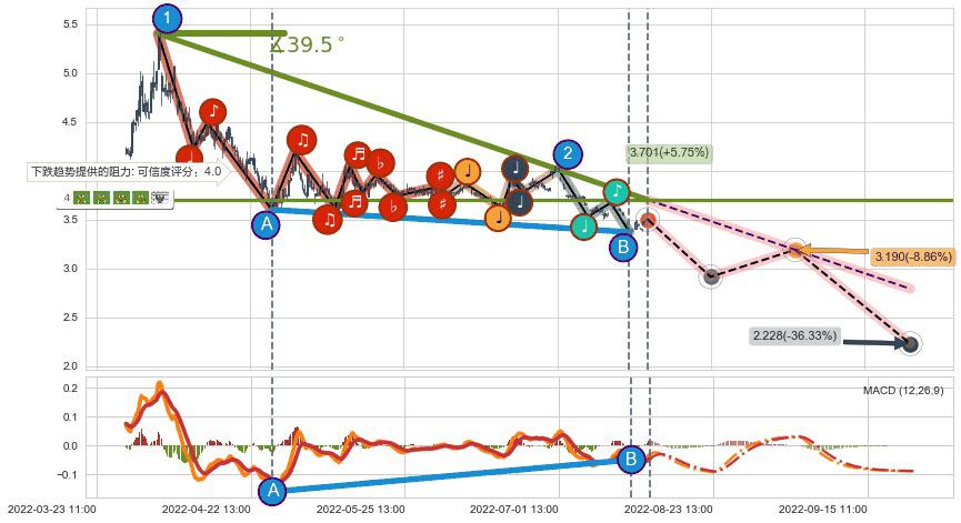 ♘ 阻力价格位4.06,可信任强度87.52%,距离最后交易2022-08-12 14:00形成的收盘价格3.500相差 +16.05%
