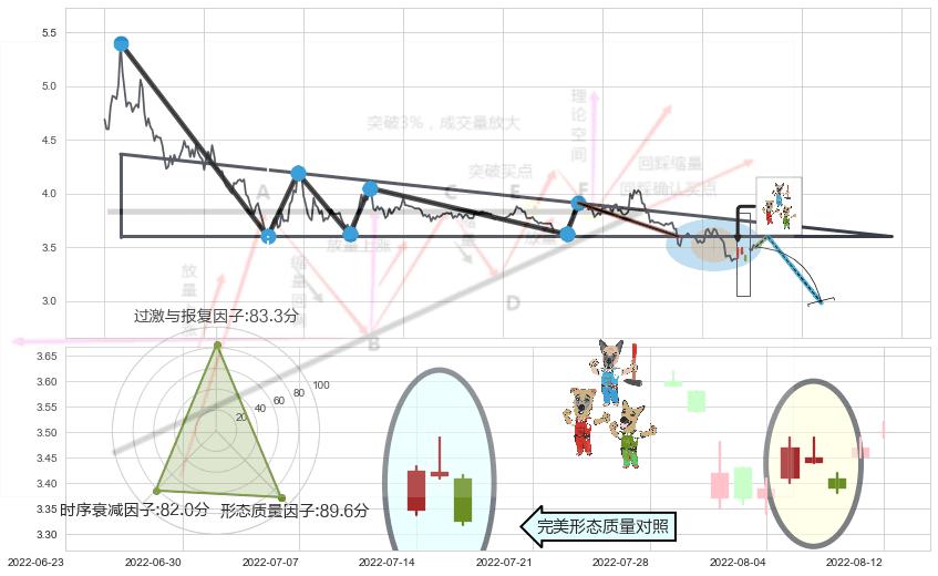♘ 在最后的下跌阶段2022-04-06 13:00至2022-08-12 13:00,存在 持续未破位的阻力位 ,阻力价格3.701,可信任强度84.56%,其距离最后价格3.500相差 +5.75%