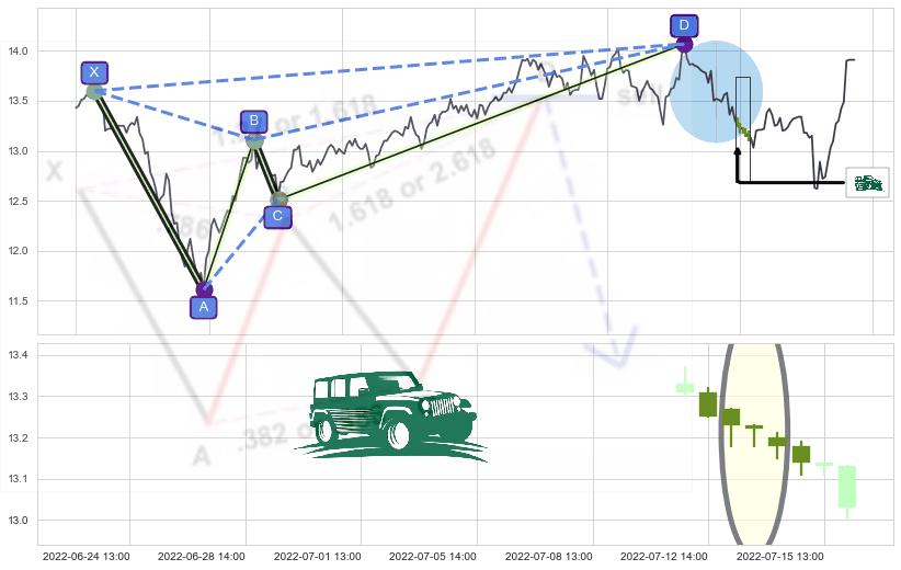 ➣ 谐波蝴蝶:已到达d点:猜想c拉升到达d点后泄力性下沉下跌(均值回复)