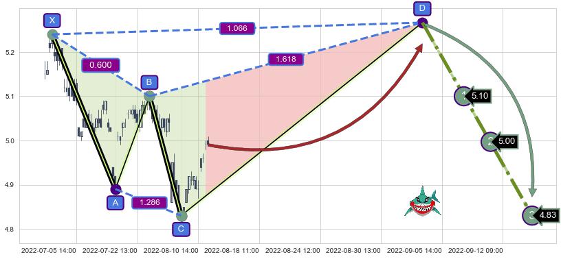 ➣ 未完成【鲨鱼】形态起点X: 06-28:14, 已到达C点: 08-04:13, 预测最终D点: 09-02:12, 共152交易小时