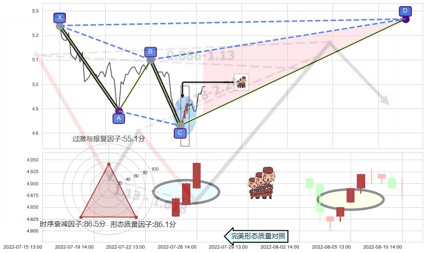 ➢ XABCD形态完美程度量化分数: 100.0