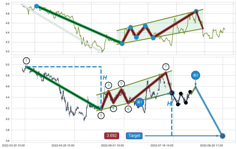 ➣ 最小中继整理跌幅→𝐇: 0.7900 (𝐇旗杆的长度:旗杆起点→顶点)