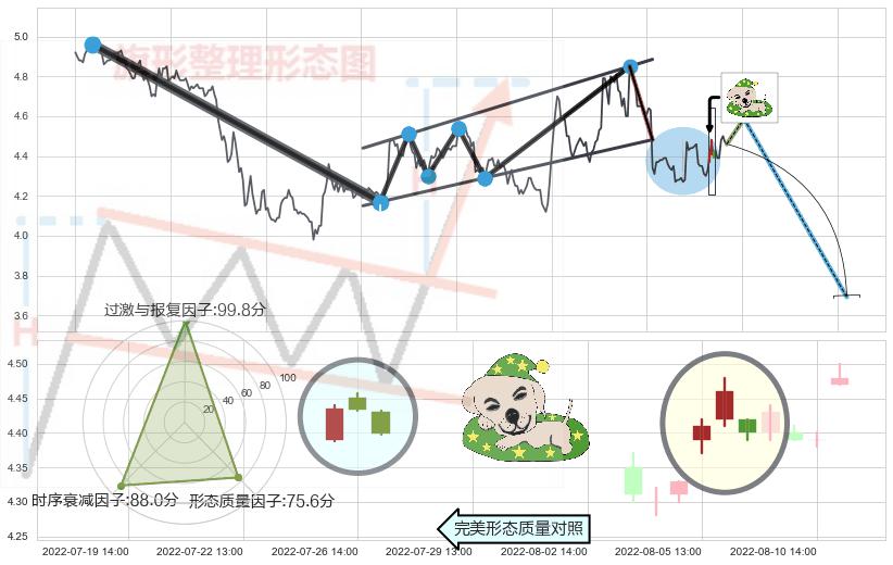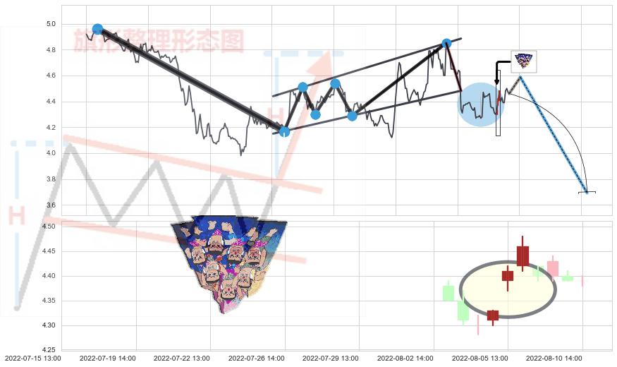 ➢ 🕰 价格走势在2022-08-05 13:00:00至2022-08-09 13:00:00期间形成黄昏之星(夜星),残存影响值:-3.93