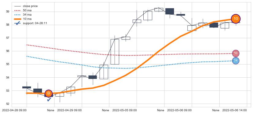 ➢ 5小时均线于(08-10 14:00: 52.40)形成【金叉】基于【金叉历史模型】预测金叉后最高波峰价格: 54.05, 金叉后最高价格53.16,尚未达到预测最高波峰价格, 预期继续上涨