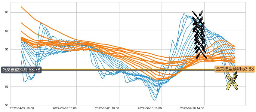 ➣ 60小时均线于(07-14 13:00: 56.33)形成【死叉】基于【死叉历史模型】预测死叉后最低波谷价格: 52.96, 死叉后最低价格51.83,已经下跌超出预测最低波谷价格, 预期反弹