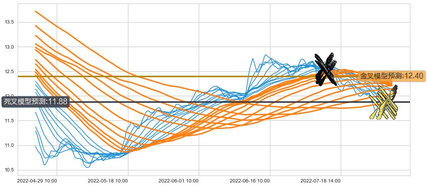 ➣ 75小时均线于(07-11 14:00: 12.46)形成【死叉】基于【死叉历史模型】预测死叉后最低波谷价格: 11.86, 死叉后最低价格11.51,已经下跌超出预测最低波谷价格, 预期反弹