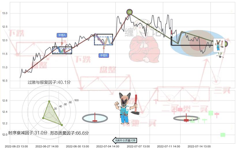 ➢ 🕰 价格走势在2022-07-12 13:00:00至2022-07-12 13:00:00期间形成看跌(高位倒锤头)流星线,残存影响值:-4.01
