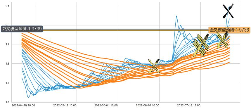 ➣ 30小时均线于(07-20 13:00: 1.9023)形成【金叉】基于【金叉历史模型】预测金叉后最高波峰价格: 1.9432, 金叉后最高价格2.150,已经上涨超出预测最高波峰价格, 预期回调