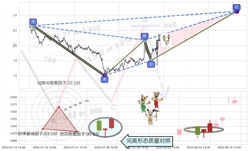 ➣ 谐波蝴蝶:猜想c点下沉接近b点后强支撑来临拉升上涨(均值回复)