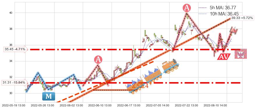 ♘ 支撑价格位35.45,可信任强度91.38%,距离最后交易2022-08-12 14:00形成的收盘价格37.20相差 -4.71%