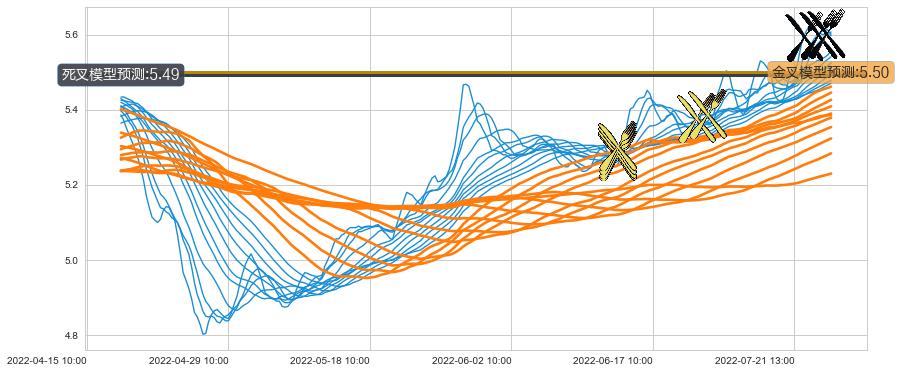 ➢ 5小时均线于(07-22 14:00: 5.59)形成【死叉】基于【死叉历史模型】预测死叉后最低波谷价格: 5.45, 死叉后最低价格5.59,尚未达到预测最低波谷价格, 预期继续下跌