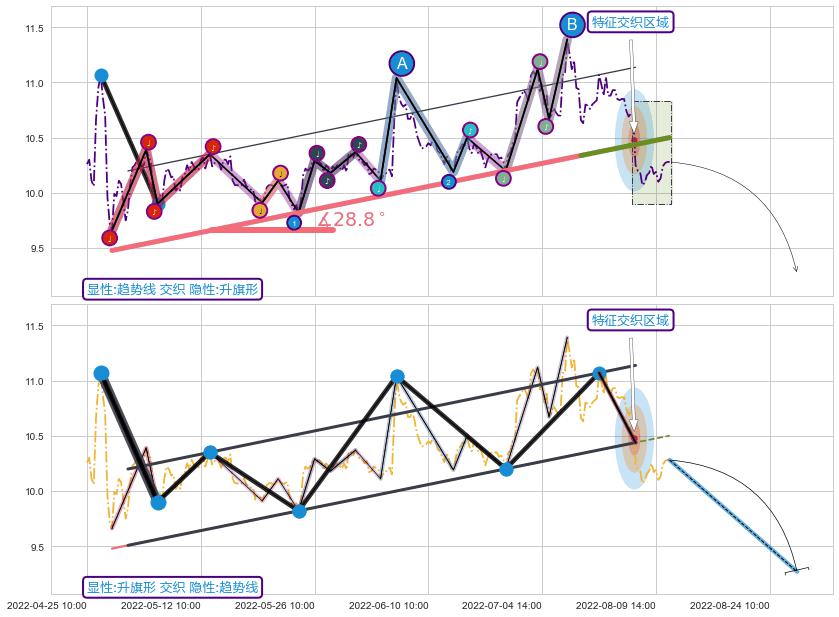 ➢ 趋势线与升旗形信号事件周期长度级别相同,同周期信号事件