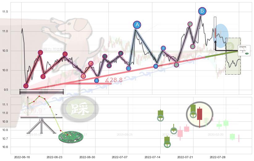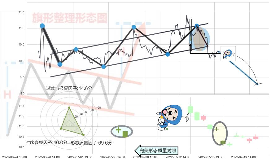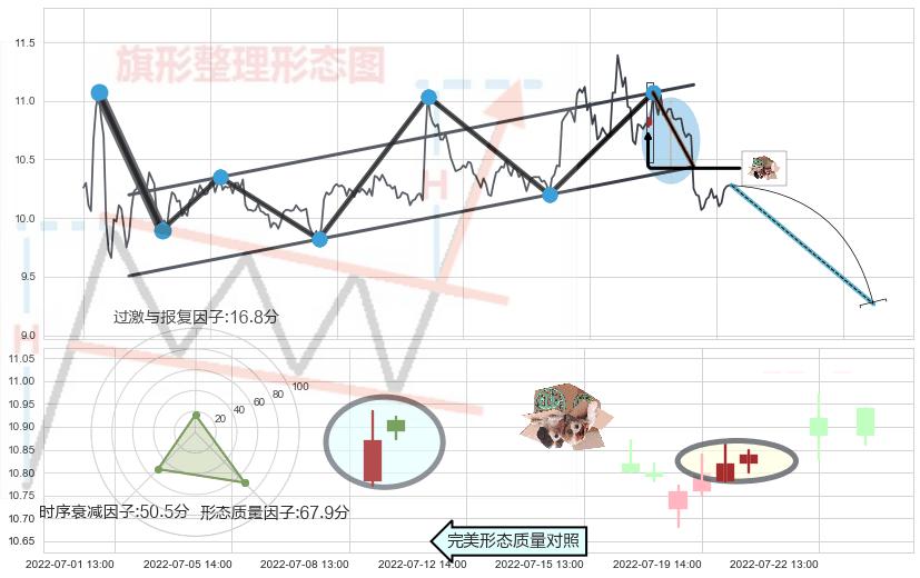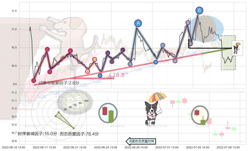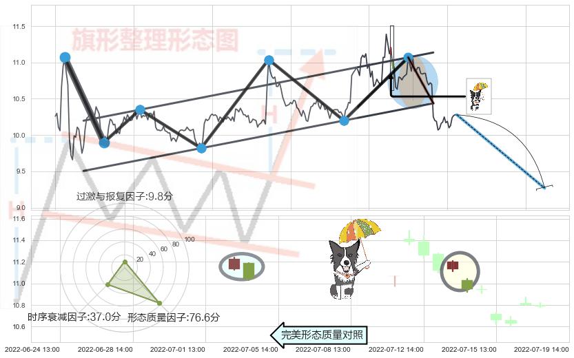 ➣ 2022-04-27 11:00-2022-07-15 13:00上升趋势存在反转[风险],其原上升趋势的支撑位(10.50)已破位[强阻力信号],原上升趋势角度: 28.8˚