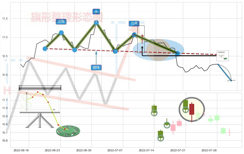 ➢ 【卖1】: 激进型 卖点→(08-02:13: 10.58 )形成突破头肩顶【反转】形态