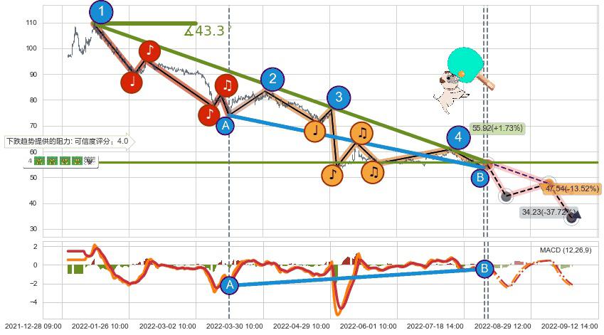 ➣ 预测:2022-09-05 10:00,【试探阻力】稳定目前下跌趋势的前提下,预测价格:47.54
