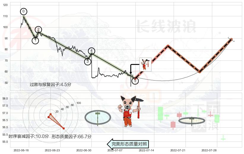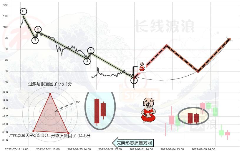 ➢ 中流砥柱形态 🔜 波浪理论下跌浪:浪5反弹拐点 综合量化分数:54.23 【偏多】