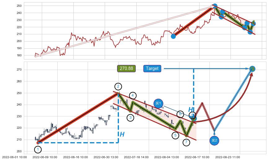 ➣ AI预测: 假定反转继续,第❷价格目标位置(08-24:14, 205.36)