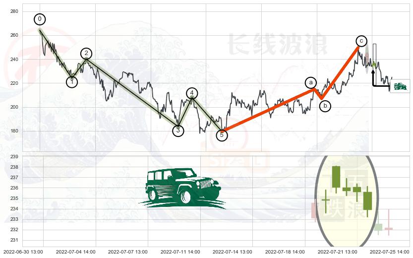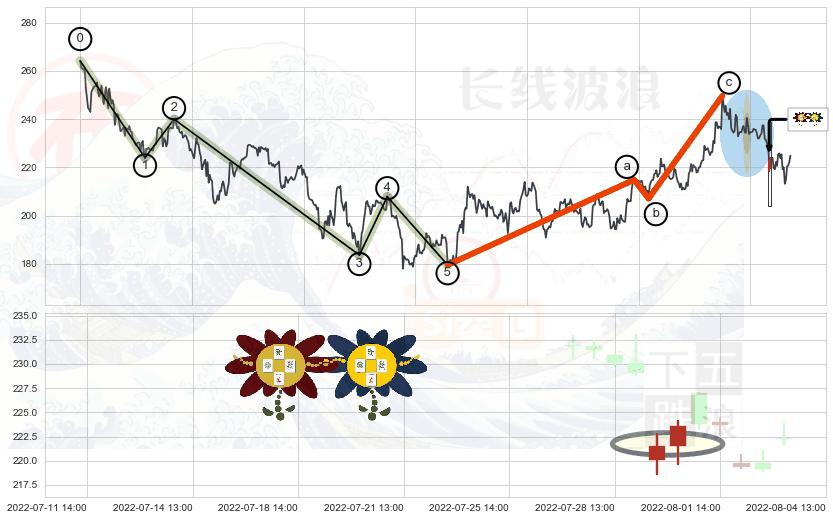 ➣ 波浪理论:猜想达到c点后小反弹终止反转下跌 → 下跌 → 【拐点】临近 → 阶段均值回复结束后继续大周期趋势跟踪