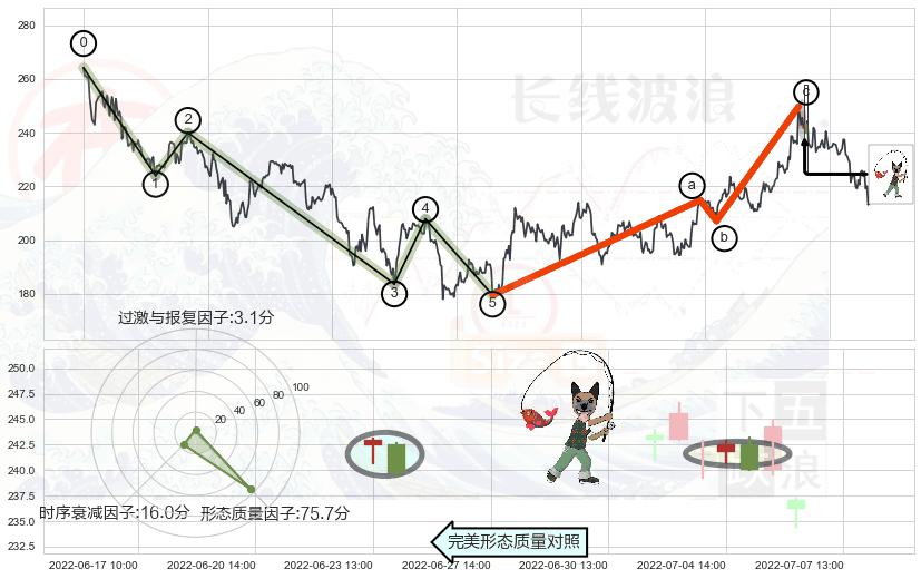 ➢ 🕰 价格走势在2022-07-19 14:00:00至2022-07-21 14:00:00期间形成高档五阴线,残存影响值:-2.81