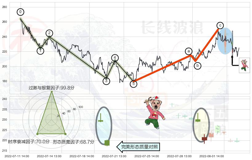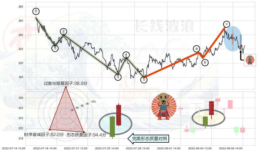 ➣ 调整浪已超过预测的c点位置,后续大趋势循环浪继续下跌概率52.43%,谨慎做多