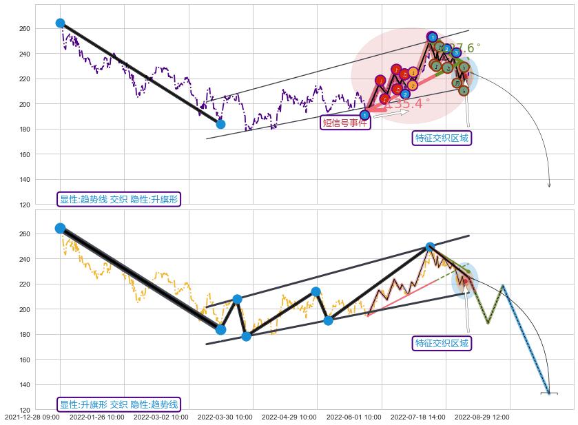 ➢ 趋势线属【短级别信号事件】升旗形属【长级别信号事件】长短周期组合信号事件, 短长事件长度比21.35%