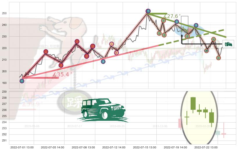 ♞ 延续前期下跌趋势提供的关键价格位有1个:229.42,将对后续走势造成一定阻力