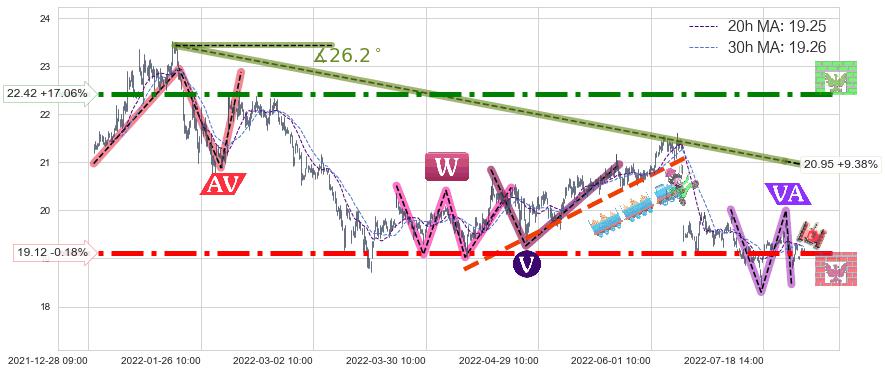 ♞ 20小时均线:19.25,30小时均线:19.26→ 快线<慢线