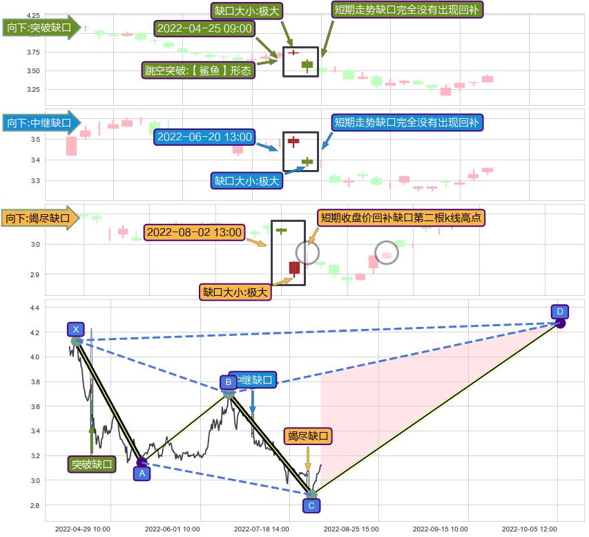 ➢ 2022-08-02 13:00形成:向下跳空【竭尽】缺口