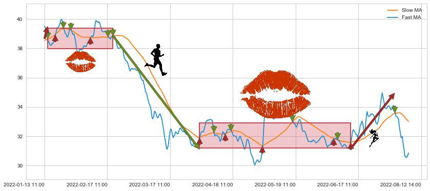 02-21 10:00至03-30 14:00 慢线与快线呈空头排列, 慢线与快线接触少,无缠绕