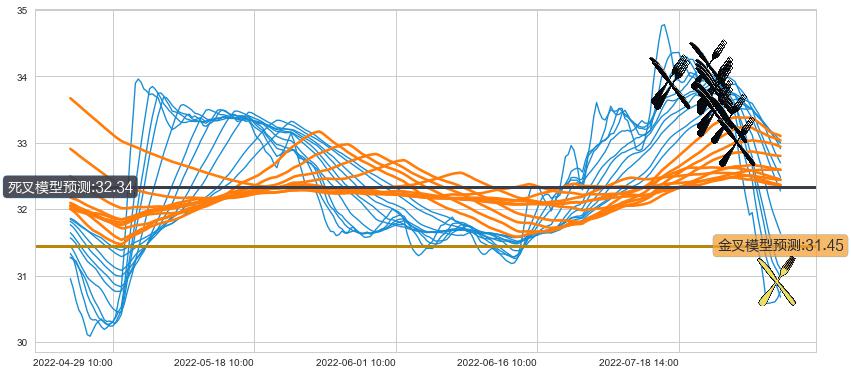 ➣ 60小时均线于(07-26 14:00: 33.45)形成【死叉】基于【死叉历史模型】预测死叉后最低波谷价格: 32.08, 死叉后最低价格30.39,已经下跌超出预测最低波谷价格, 预期反弹