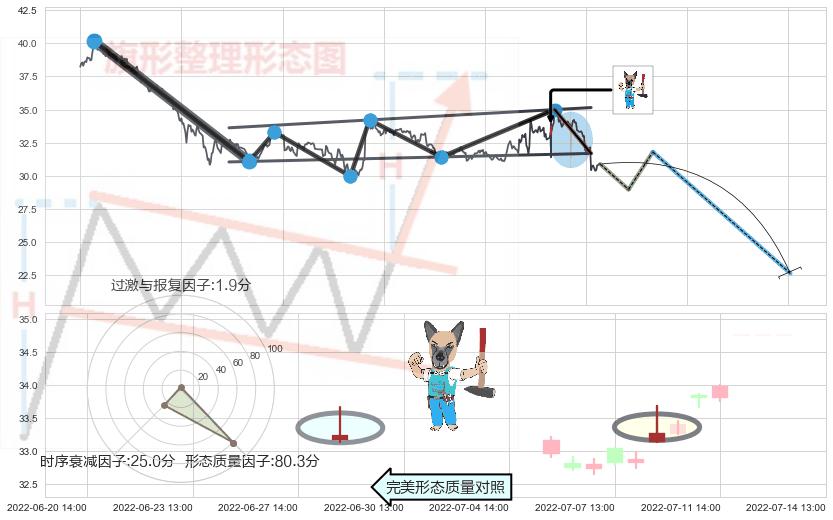 ➢ 射击之星形态 🔜 升旗形支撑破位转换阻力下跌 综合量化分数:35.73 【强烈看空】