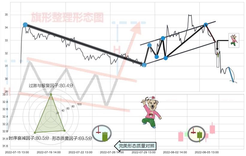 ➢ 【卖1】: 激进型 卖点→(08-02:13: 32.87 )形成突破升⚑旗形【整理】形态