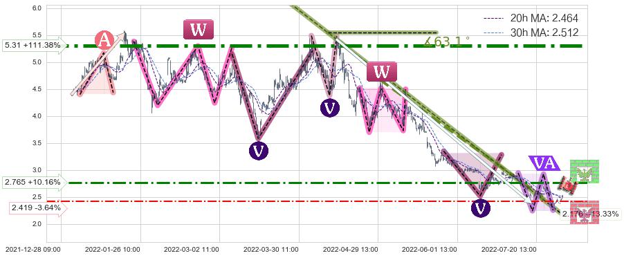 ♘ 阻力价格位2.765,可信任强度55.32%,距离最后交易2022-08-12 14:00形成的收盘价格2.510相差 +10.16%